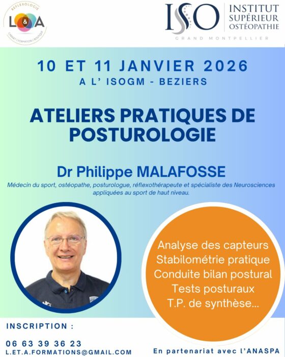 – 16h00 – T.P. de synthèse : analyse posturale, choix des corrections, suivi des